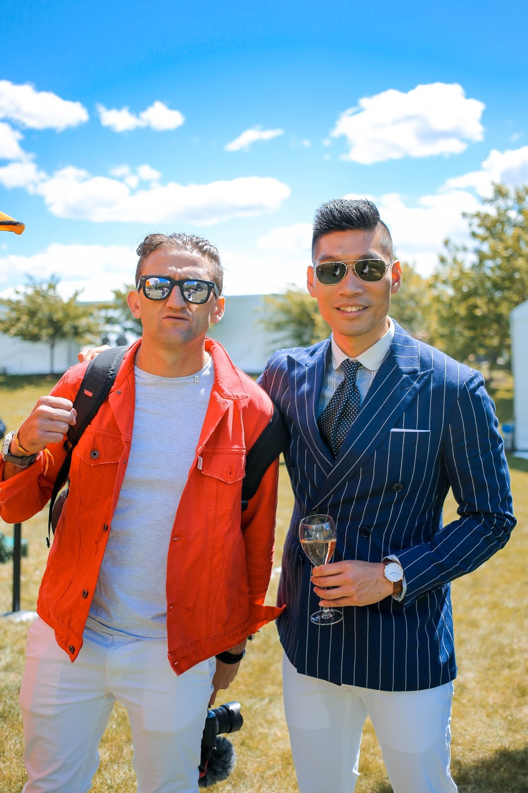 What a great way to kick off the summer! This was our first polo match ever and it was quite the experience. It was all around great vibes surrounded by good people (also celebrities), delicious food, and perfect weather...oh and of course non-stop Veuve Clicquot being served. The event was like the modern day Great Gatsby party filled with well dressed people having a great time in the sun. Really thankful for the team over at Ralph Lauren to let me pick out an outfit for this special occasion. This pinstripe double-breasted jacket paired with a dot tie and white pants will go down as one of my favorite outfits of all time. This is my personal favorite styles all combined in one. Definitely feeling my most dapper self on this day!